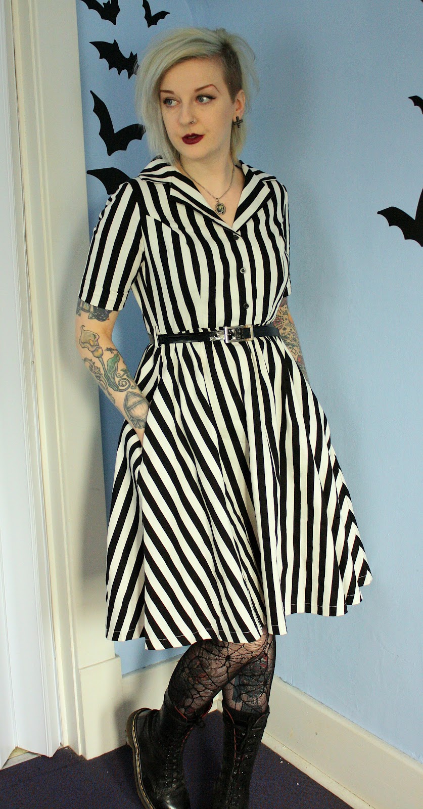 Coffin Kitsch Bletchley Black Stripe Shirt Dress By Lindy Bop
