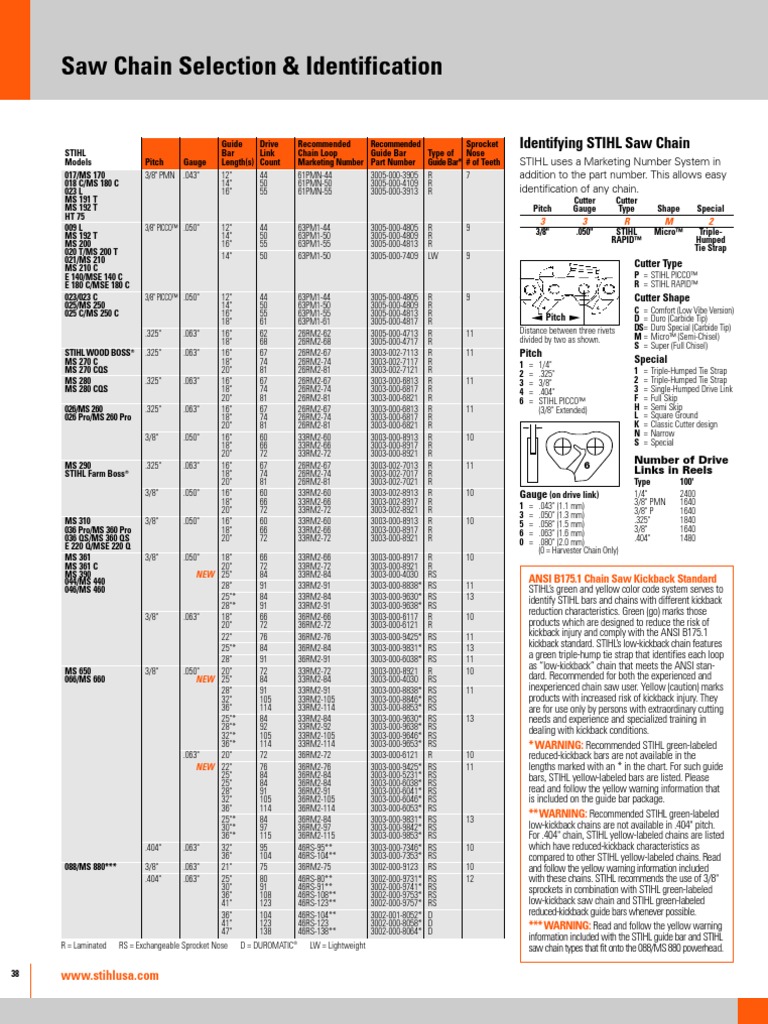 Stihl Chainsaw Chain Chart