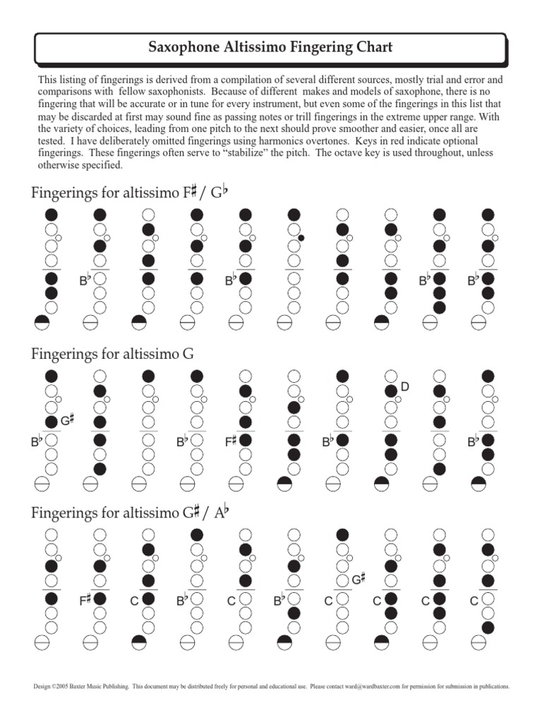 Saxophone Altissimo Fingering Chart Pdf Document