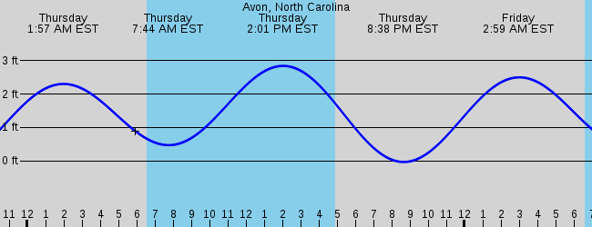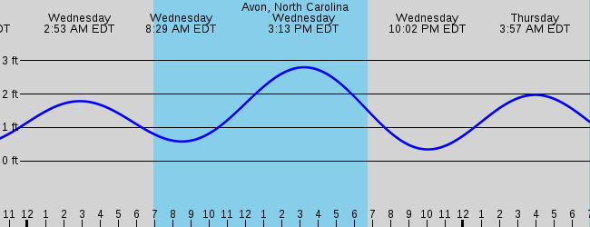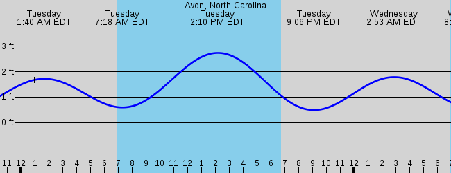 The tide chart above shows the height and times of high tide and low tide for Avon North Carolina. Select highlight the month start date and total days. Charts advanced tools Upgrade for 16-day forecasts Get Pro.