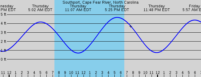 Then scroll to the bottom of this page. Todays tide times for Southport Cape Fear River North Carolina. The grey shading corresponds to nighttime hours between sunset and sunrise at Southport Townsend Gut.