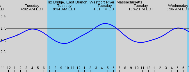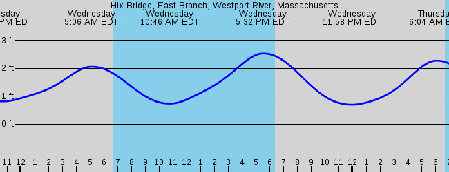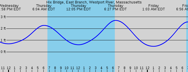 80 days UTC -4 Weekly forecast. Tide Tables Charts for East Branch Hix Bridge Westport River Massachusetts for December 2021. The red flashing dot shows the tide time right now.